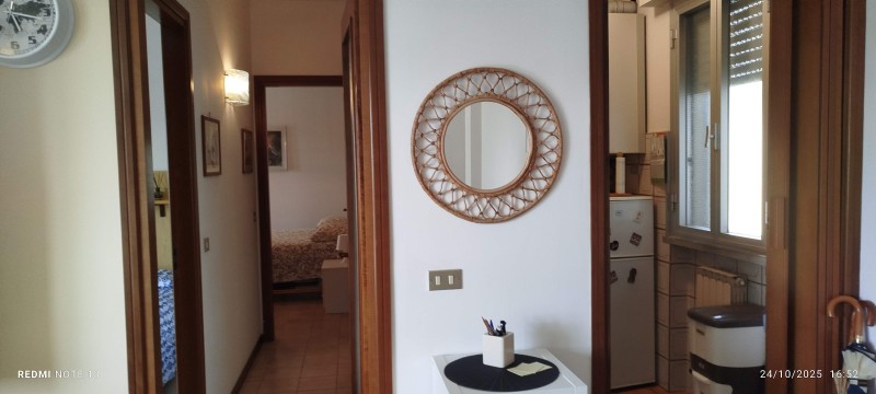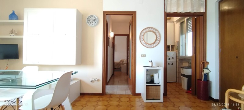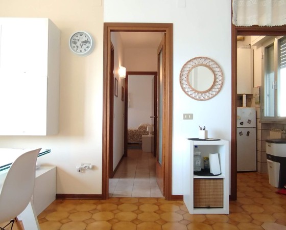 L'appartamento e' situato al piano primo di condominio di soli due piani. Si raggiunge l'appartamento a piedi da scale esterne o con comodo ascensore. Al suo interno ci accoglie una sala abbastanza grande con zona tinello e divano, affaccio su grazioso balcone . Cucinotto con finestra,.