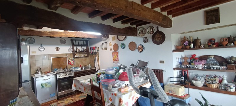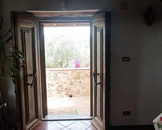 La casa Padronale e' composta da Grazioso terrazzino d'ingresso, cucina abitabile , Tinello con Camino , Sala . al piano superiore troviamo Tre Camere, Bagno. Travi a vista , infissi in legno.